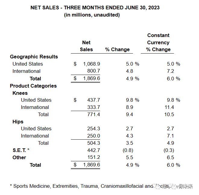 捷迈邦美二季度营收18.7 亿美元(约134亿人民币),同比增长 4.9%;净利润为 2.096 亿美元,每股收益为 1.00 美元,同比增长 36%。公司上调了全年的收入增长指引,从 5.0-6.0% 提高到 6.5-7.0%。